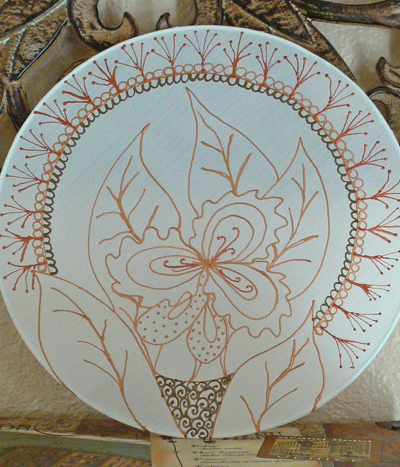 I spent a lot of time blending colors to try to get some depth to the flowers which look quite flat when outlined in gutta.